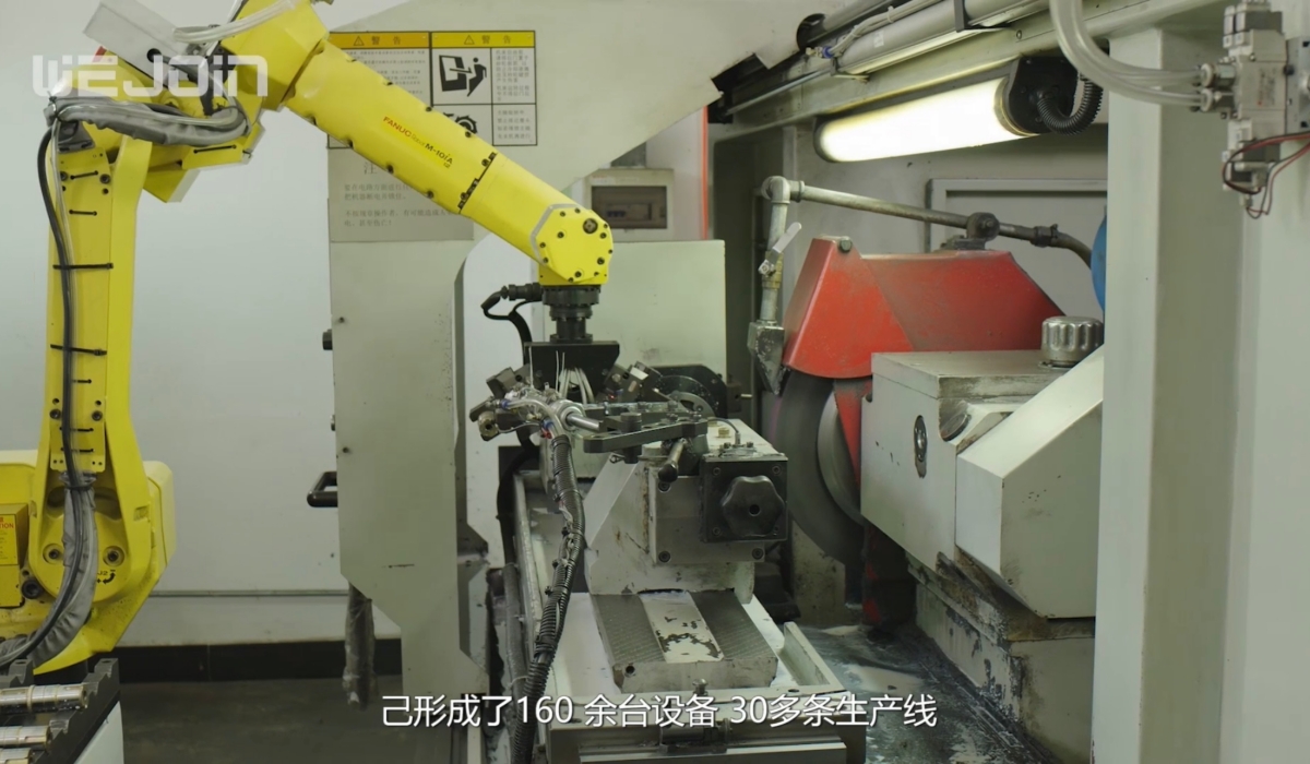 從2017年開(kāi)始,威捷斥巨資打造智能機(jī)器人生產(chǎn)線,邁進(jìn)智能制造新時(shí)代。截止目前,已形成了160 余臺(tái)設(shè)備、30多條生產(chǎn)線、年產(chǎn)能30萬(wàn)臺(tái)的規(guī)模。威捷實(shí)現(xiàn)了精密壓鑄,減速箱、軸類、曲臂加工,電機(jī)和機(jī)芯組裝,整機(jī)裝配、包裝等工藝流程的自動(dòng)化,綜合自動(dòng)化實(shí)現(xiàn)率80%以上。威捷道閘90%以上的零配件采用智能機(jī)器人生產(chǎn),使得品質(zhì)一致性、穩(wěn)定性更優(yōu)。